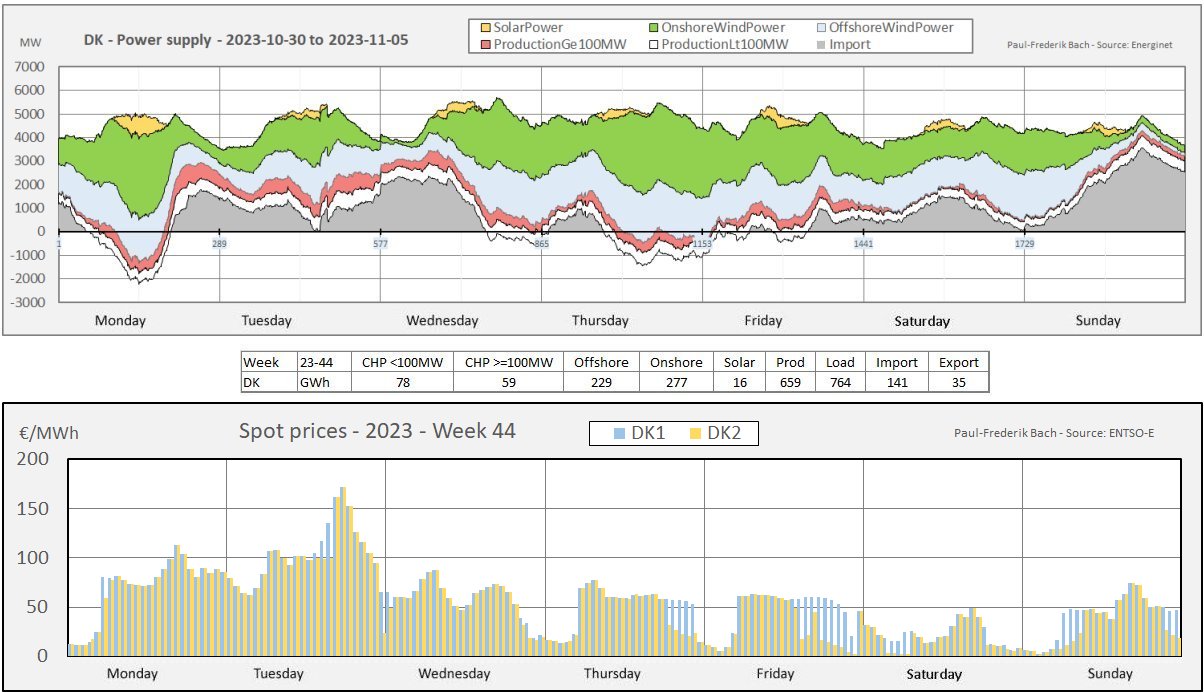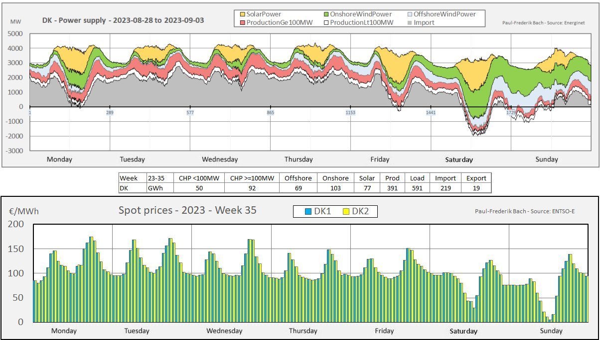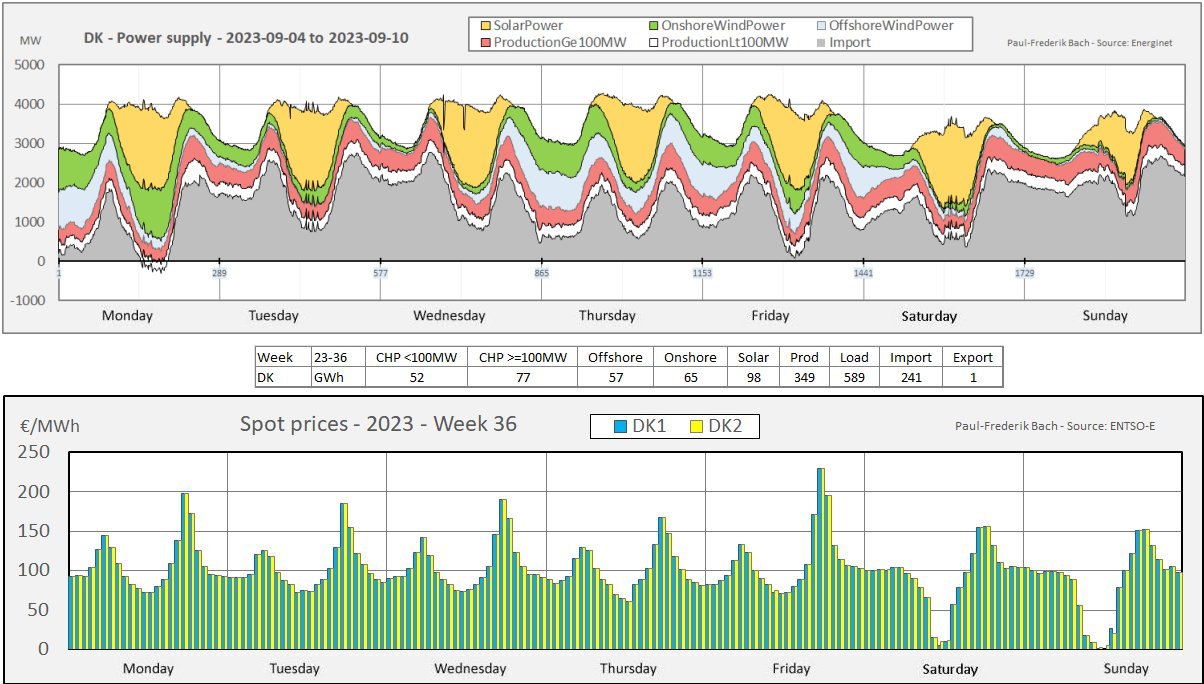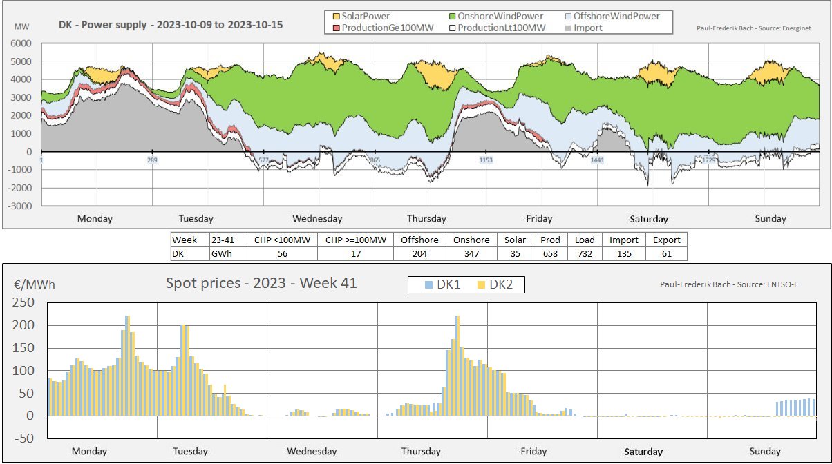 | Week 40 2023 - 85/87 hours (DK1/DK2) with prices below 10 €/MWh |